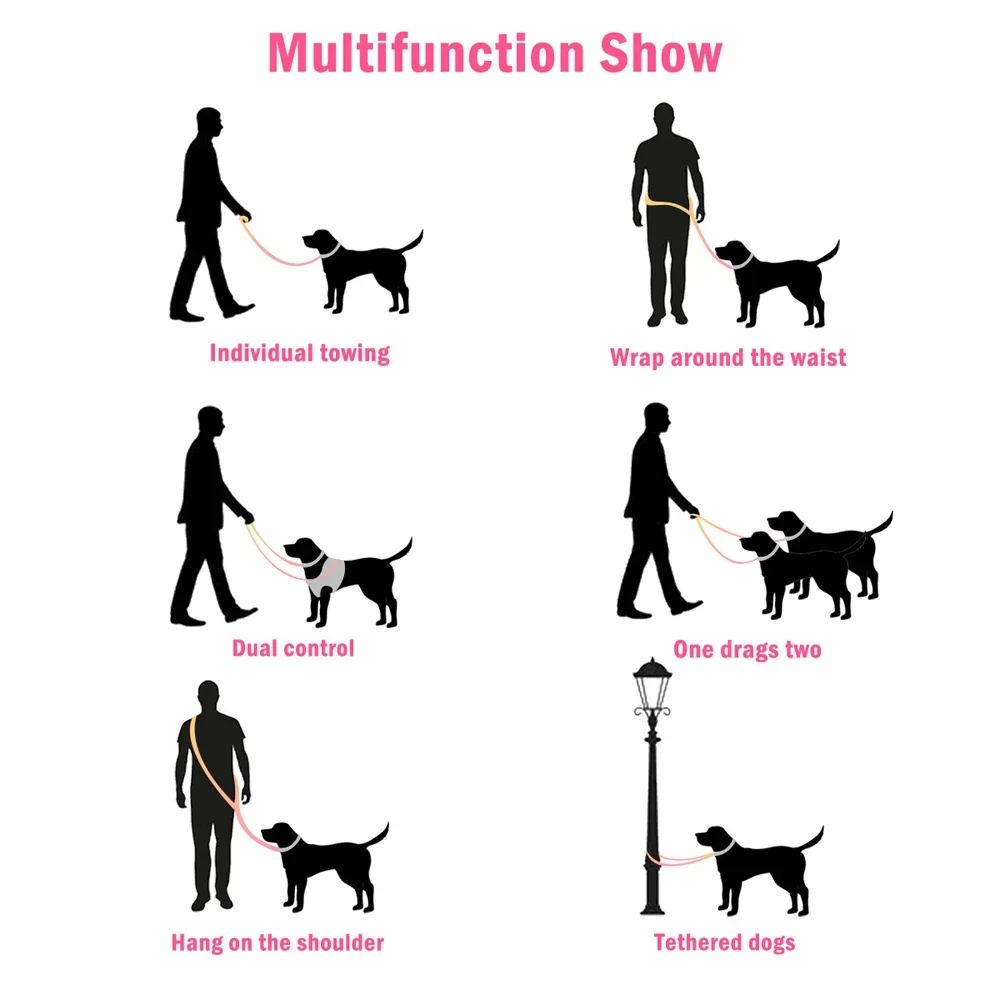 Double Head Dog Leash Crossbody Pet Round Traction Rope Lead Training Walking Cat Leashes